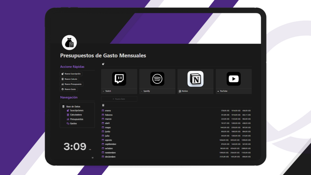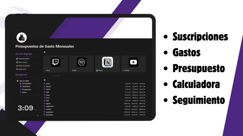 Imagina tener todos tus suscripciones, gastos y presupuestos organizados en un solo lugar, sin la complicación de múltiples hojas de cálculo y aplicaciones dispersas. Con nuestra plantilla, la gestión de tus finanzas será más sencilla y clara, permitiéndote alcanzar tus metas económicas de manera eficiente. Beneficios